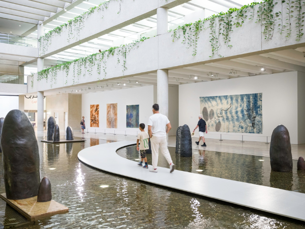 Contemporary art from Australia, Asia and the Pacific exhibited in a modern riverside building.
